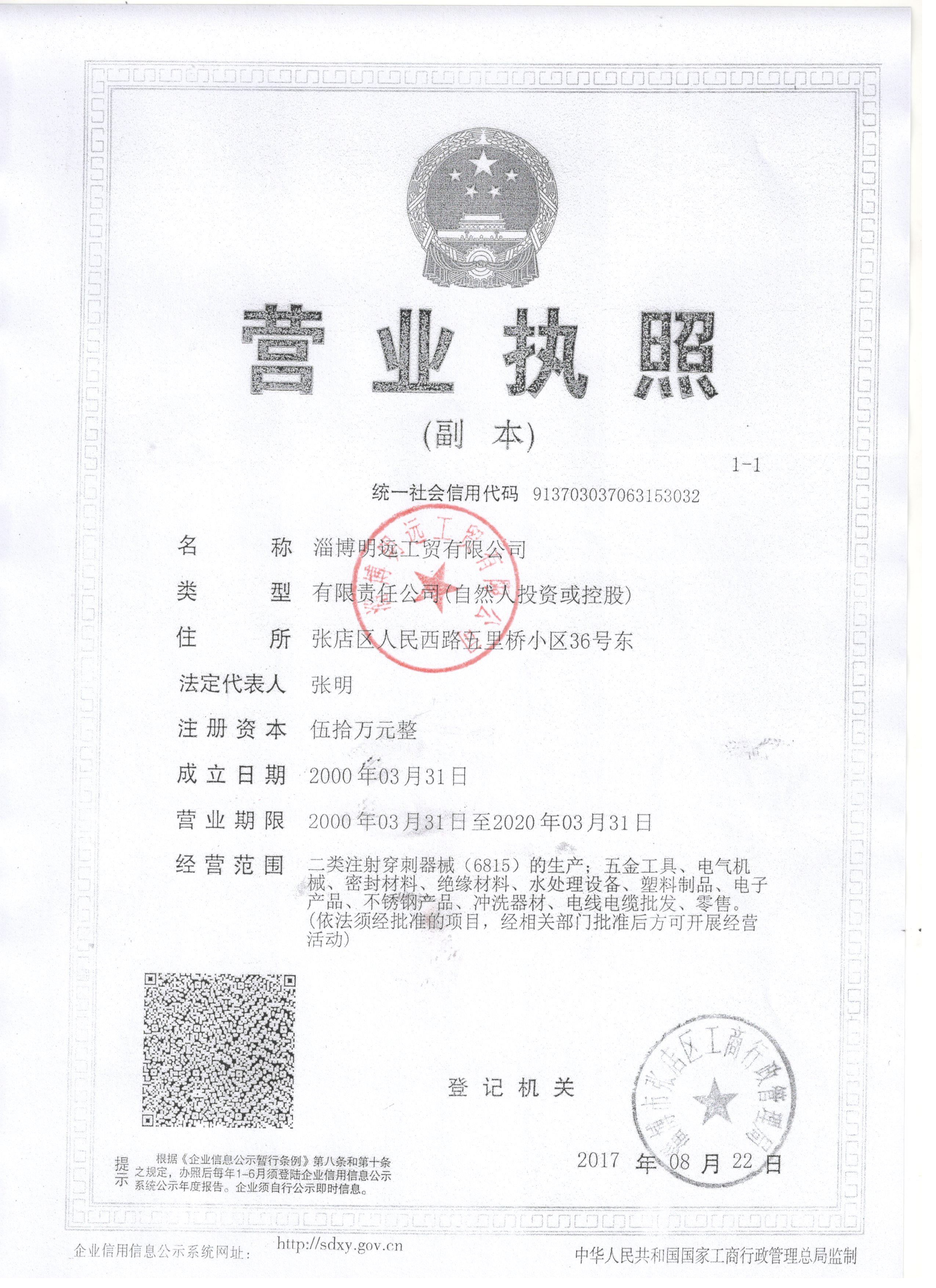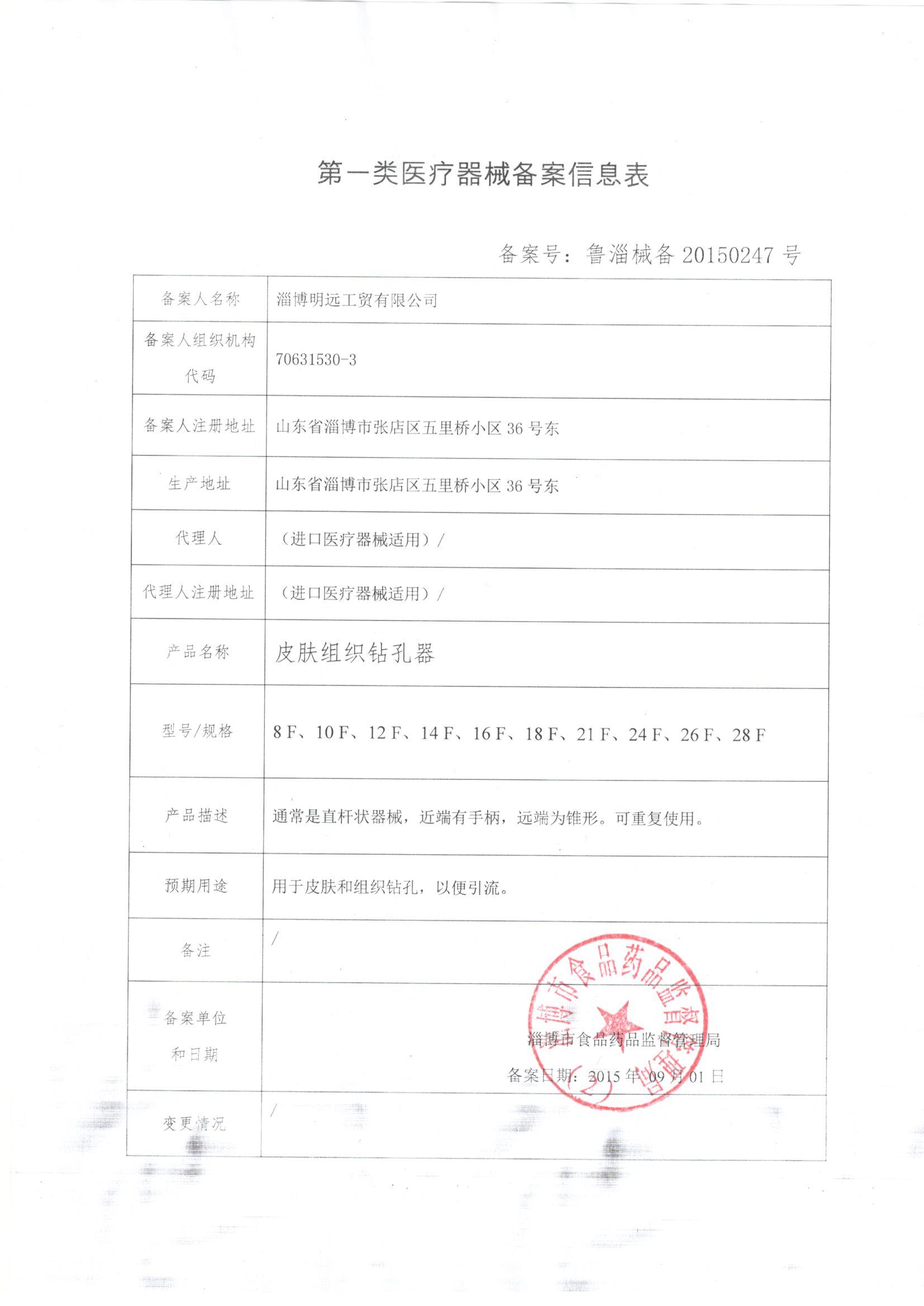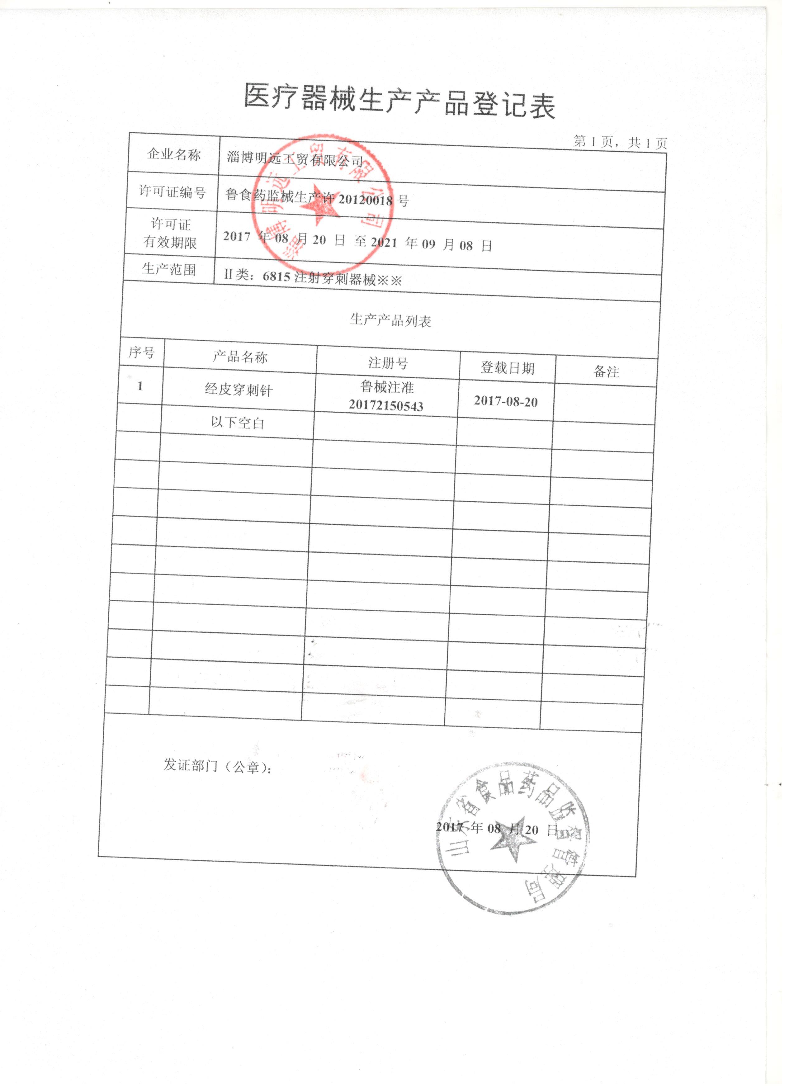 淄博明遠工貿(mào)有限公司 公司成立于2000年,是二類醫(yī)用穿刺器械專業(yè)生產(chǎn)廠家。公司以微創(chuàng)手術器械為發(fā)展方向,產(chǎn)品以各類特種穿刺針為主。我們以全方位的管理手段,嚴格地控制產(chǎn)品品質.歡迎您選用我公司產(chǎn)品并對我們的產(chǎn)品提出建設性的建議和意見.我們愿意成為您好的生意伙伴和知心朋友。